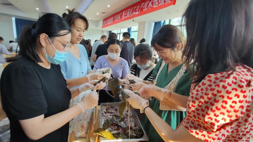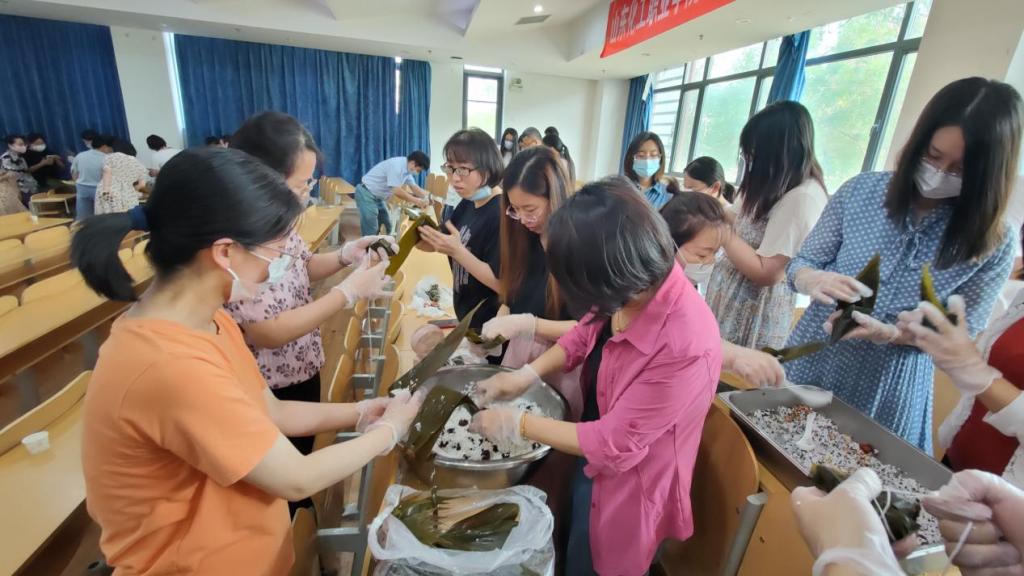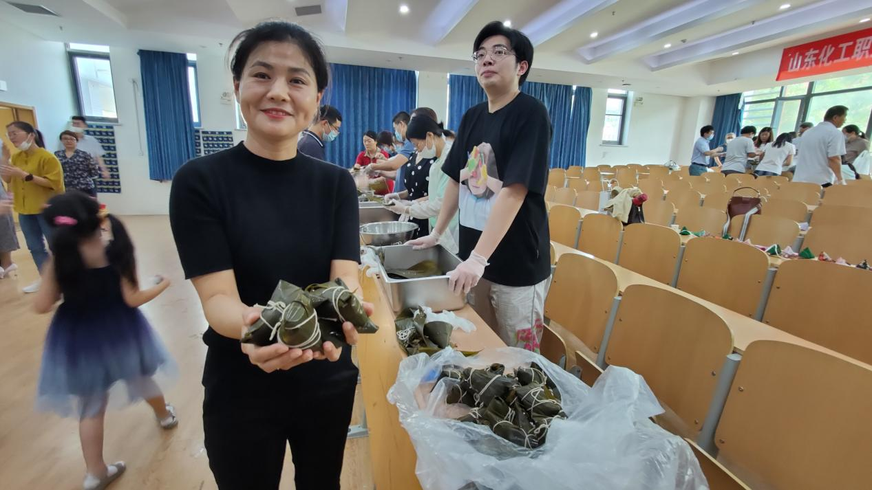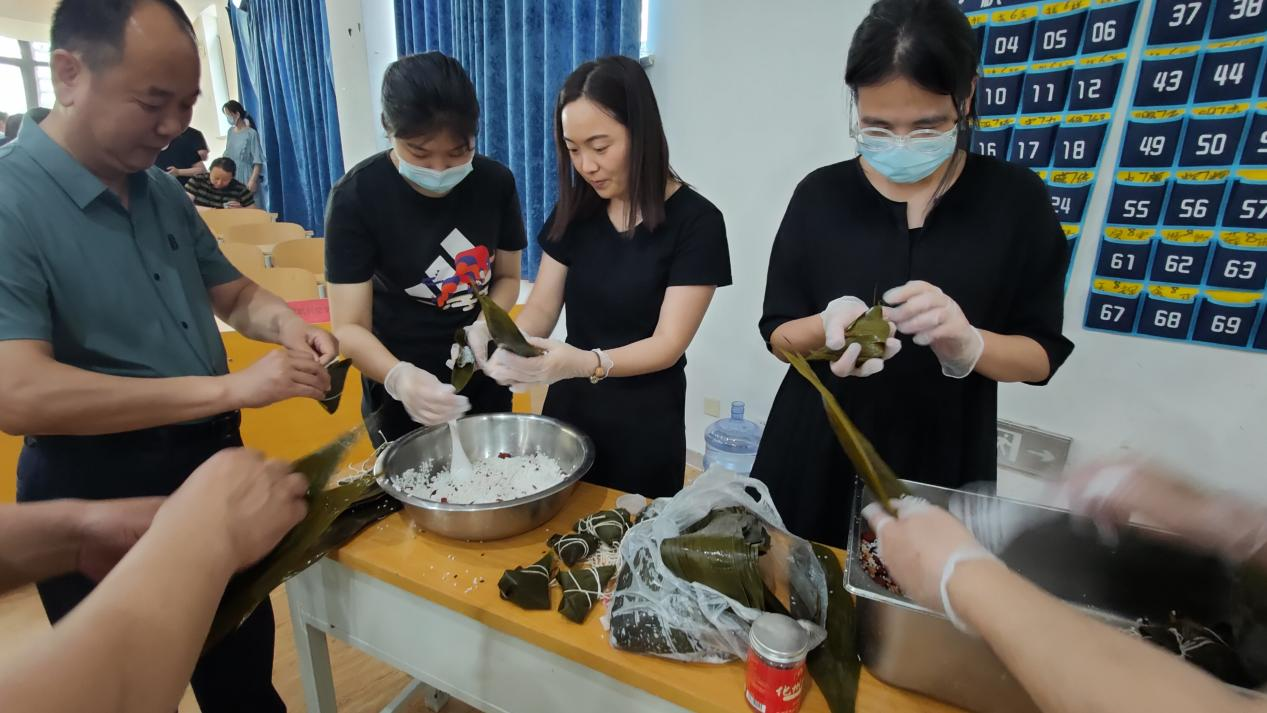 随后,教职工们相互交流经验,切磋技艺,一个个颜色鲜绿、形态各异的粽子陆续展现在大家眼前。在一片欢声笑语中,不知不觉,食材已用尽,教职工们却仍意犹未尽。