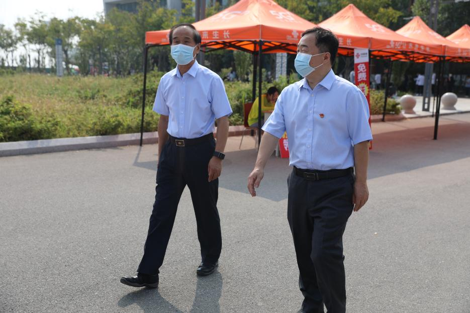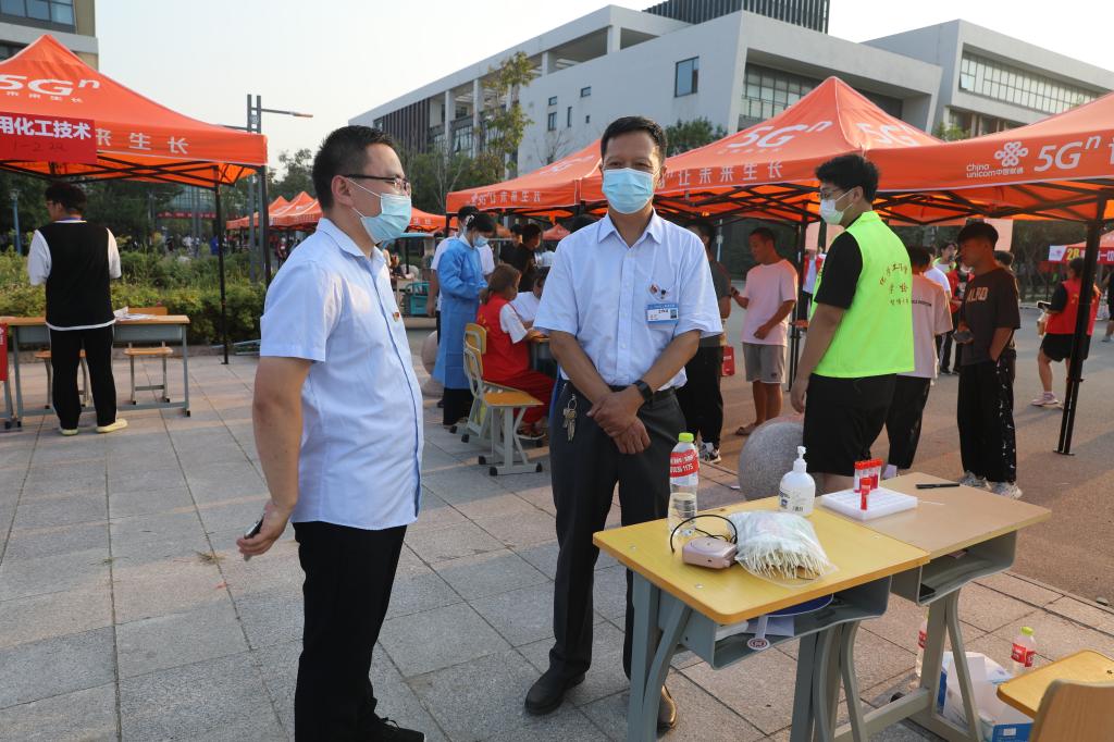 学校领导亲临迎新现场,检查指导迎新工作,了解疫情防控和新生报到工作,询问后勤保障和志愿服务工作,看望2022级新同学,亲切慰问迎新工作人员。
