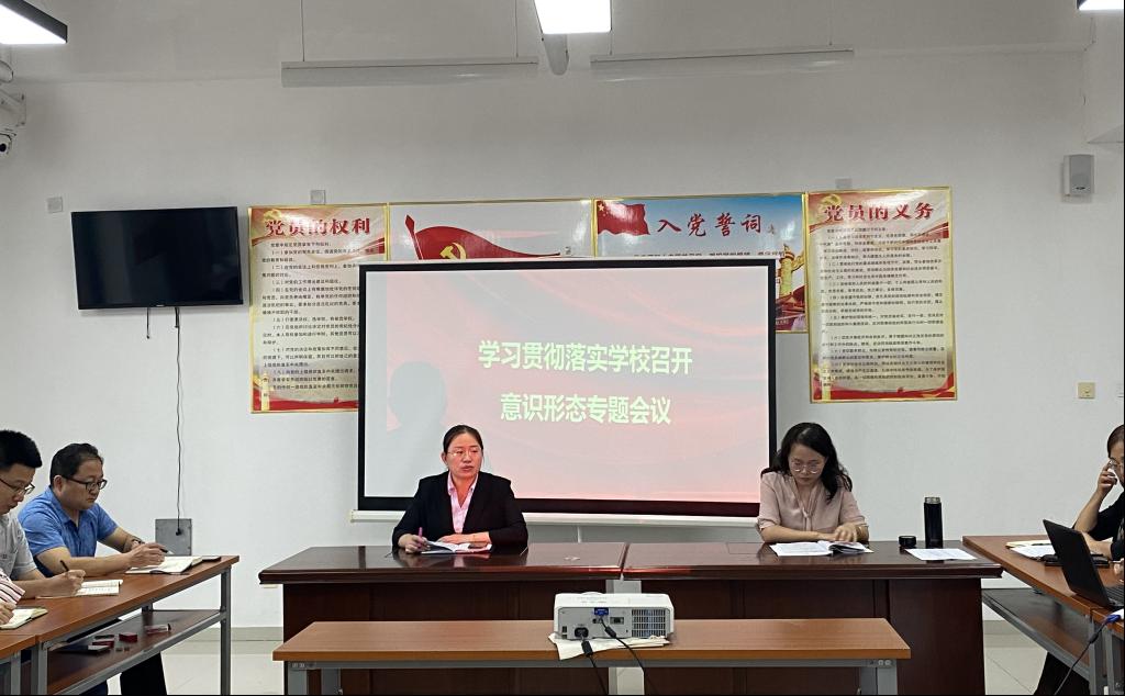 会上,朱怀红书记总结了上半年意识形态、网络舆情、宗教信仰情况等工作,分析形势、查找不足、明确方向,明确了改进网络舆情应对工作,加强疫情防控,继续摸排师生宗教信仰的工作总店,推动意识形态工作责任制落细落实,为迎接党的二十大的胜利召开营造良好校园舆论氛围。朱怀红书记进一步转达学校意识形态专题会议精神,要求全体教职工提高政治站位,全员参与意识形态工作,坚持有精度、有温度的管理,有高度、有力度的落实意识形态责任,全面做好安全维稳工作。