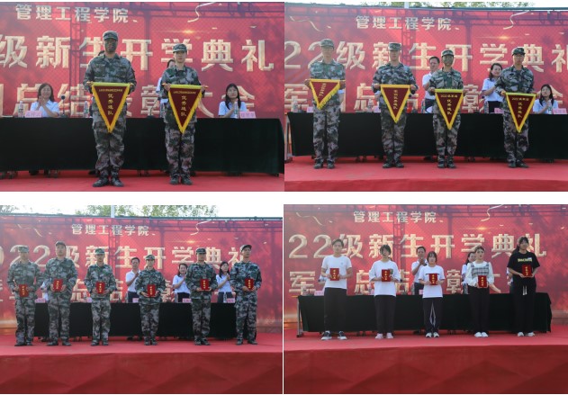 随后,管理工程学院副院长孟祥云宣读了2022级新生军训及2021-2022学年第二学期管理工程学院十佳学生表彰决定,领导为受表彰的集体和个人进行颁奖,向获奖者表示祝贺,向为军训工作付出辛勤努力的全体教官致以衷心的感谢和崇高的敬意。