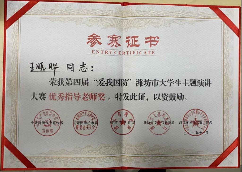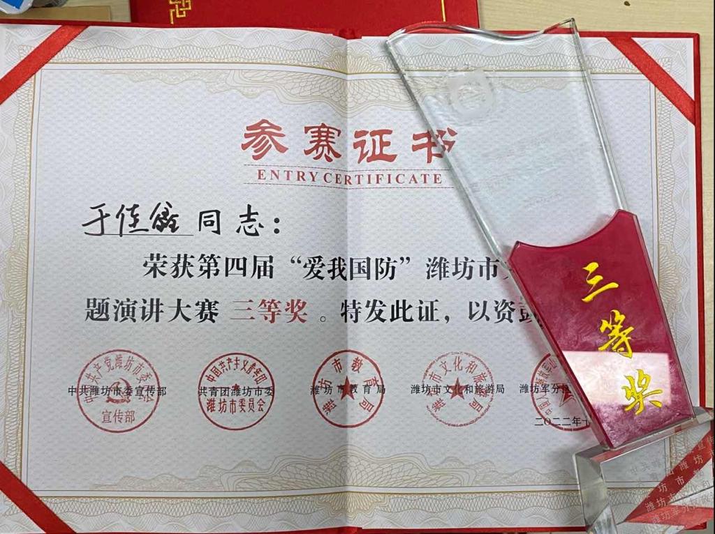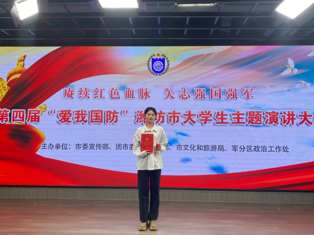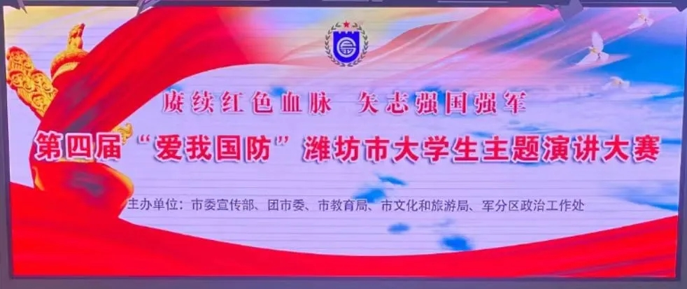 为持续深化广大青年国防信念,赓续红色血脉,矢志强国强军。11月5日-6日,市委宣传部、团市委、市教育局、市文化和旅游局、军分区政治工作处等主办单位在潍坊日报社组织了第四届“爱我国防”潍坊市大学生主题演讲大赛,本次比赛并在潍坊融媒现场直播。我校化学工程学院于佳鑫和管理工程学院耿优宝经过层层赛选突破重围代表我校参加市级比赛。