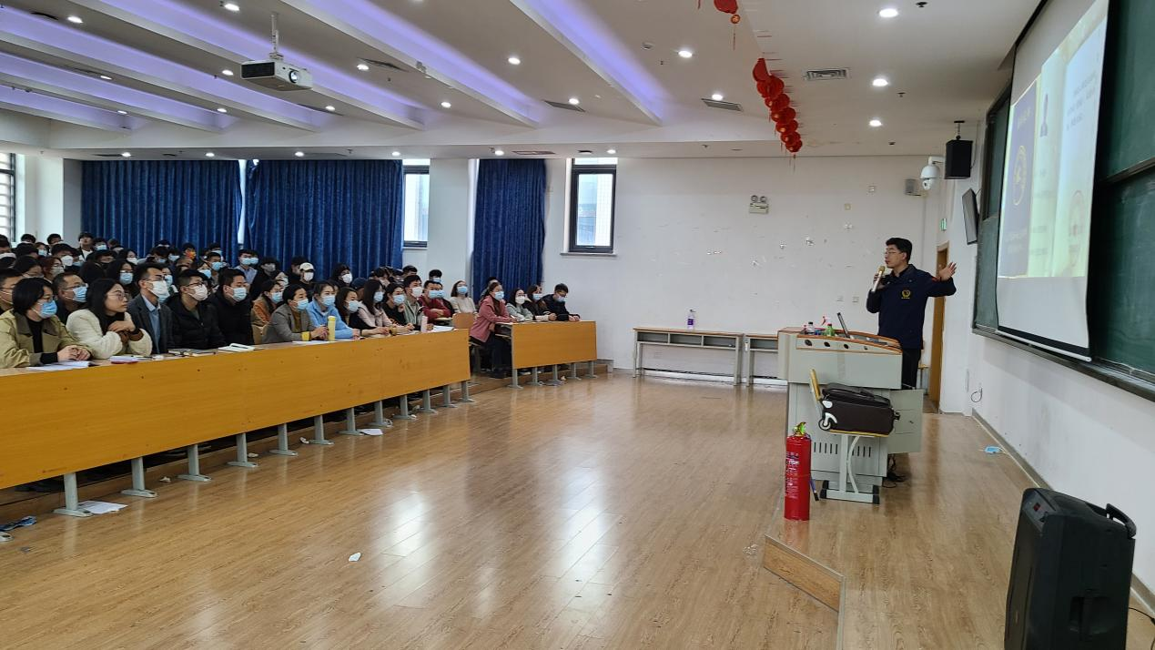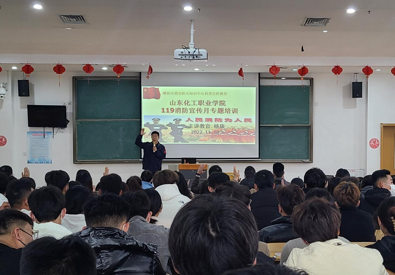 学校教职工和22级新生在多媒体教室参加了消防安全知识讲座。潍坊市消安防火中心主讲教官杨康向全体师生讲解了消防安全的重要性、威胁消防安全的火灾隐患及重点防控部位等。杨教官用诸多的火灾案例普及火灾隐患,并详细讲解了发生火灾时如何应对、如何紧急自救和逃生等知识。