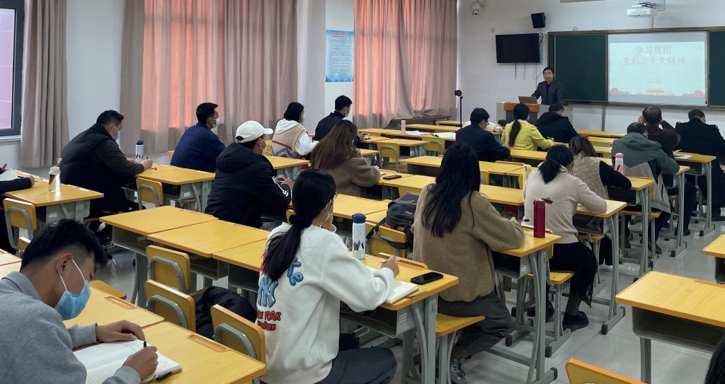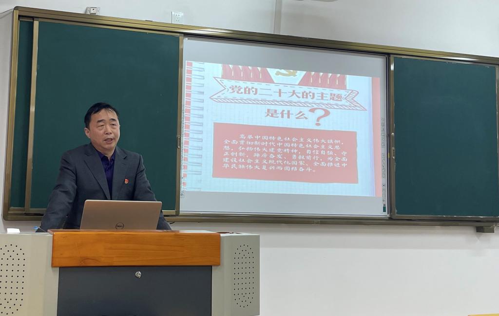 为深入学习宣传贯彻党的二十大精神,切实将党员教师的思想和行动统一到党的二十大精神上来,推动党的二十大精神落地落细落实,11月25日,基础教学部党支部联系点领导,学校副校长冯喜成到基础部宣讲党的二十大精神。