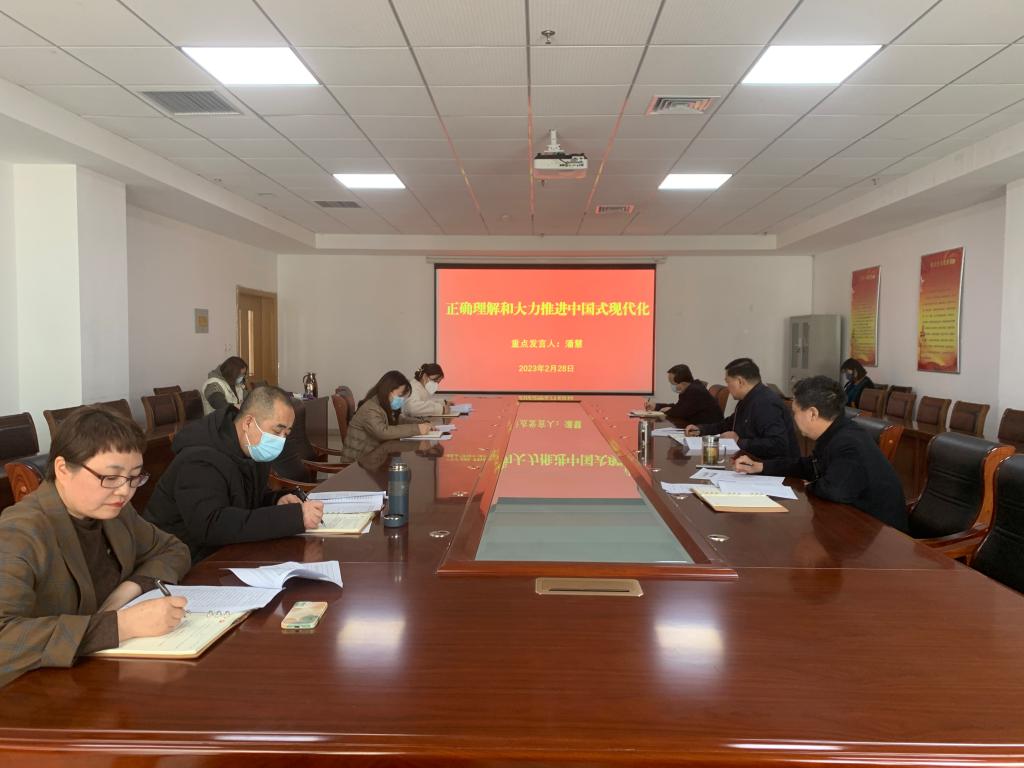 2月28日下午,山东化工职业学院召开党委理论中心组学习活动。党委书记孔祥奴主持,党委副书记潘慧带领学习《习近平在学习贯彻党的二十大精神研讨班开班式上发表重要讲话强调 正确理解和大力推进中国式现代化》。中心组成员和党委部门主要负责人列席。