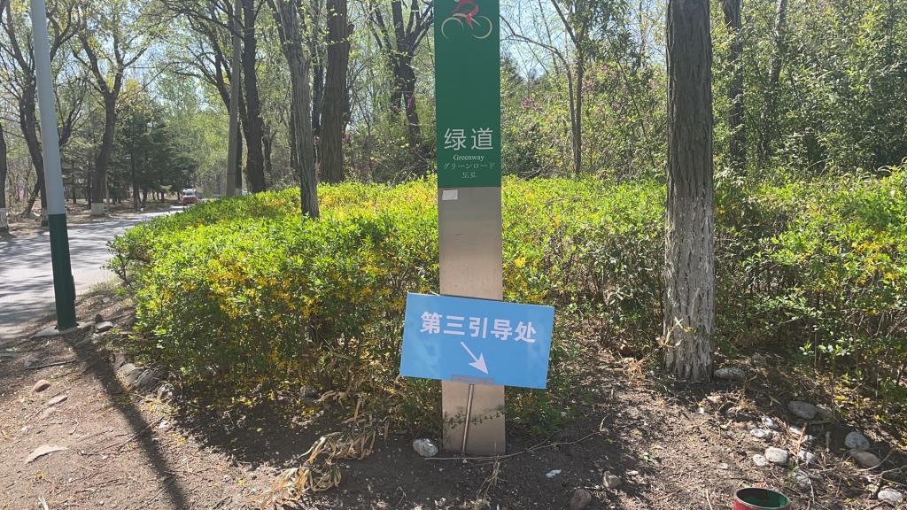 徒步路线中还设置了引导处,引导的工作人员为老师们讲解徒步路线并指明前进的方向。