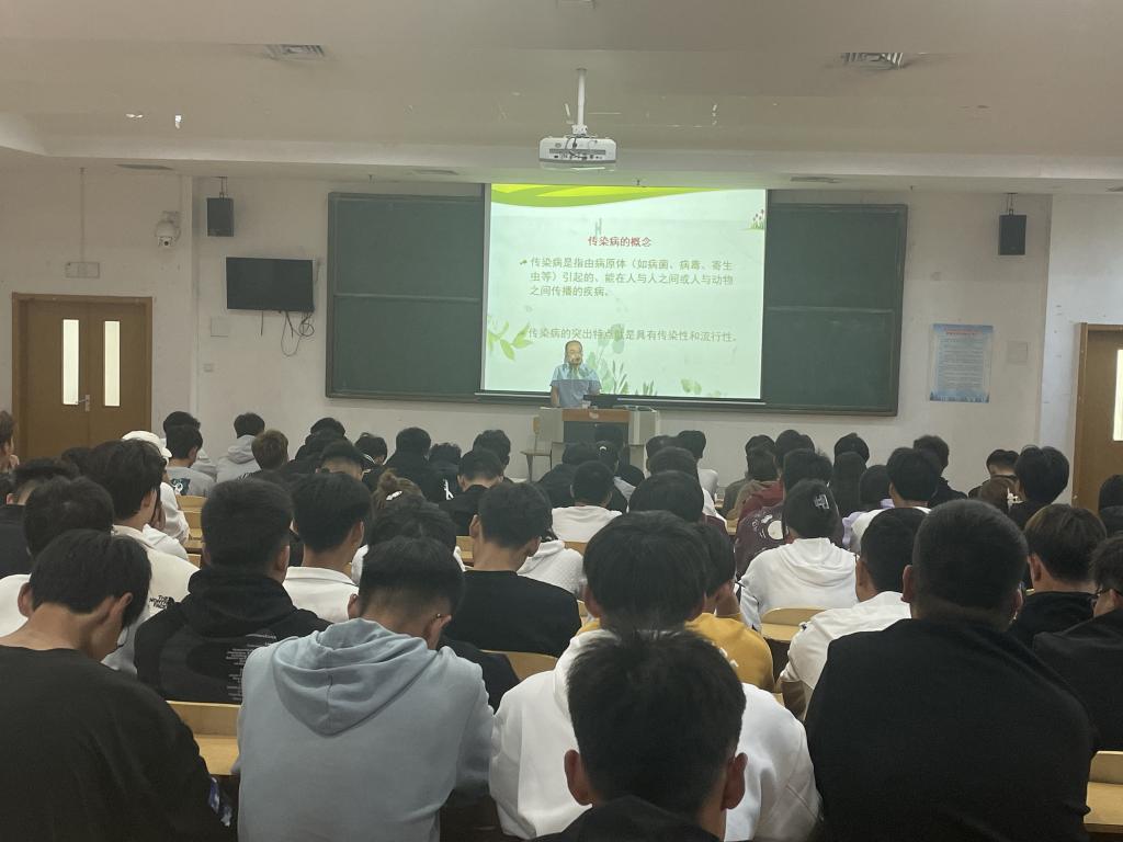 传染病是指由病原体(如病菌、病毒、寄生虫等)引起的、能在人与人之间或人与动物之间传播的疾病。传染病按照传播途径不同,主要分为呼吸道传染病、消化道传染病、血液传染病和体表传染病。学校秋冬季主要针对流感、结核病、急慢性肠胃炎等多发传染病进行防控。孙主任就传染病防控的三个重要环节对学生进行讲解,分别是控制传染源、切断传播途径和保护易感人群。特别是为了预防流行性感冒的大规模爆发,建议同学们提前接种流感疫苗,一旦出现流感症状及时就医并规范佩戴口罩,不带病上课、不随地吐痰。