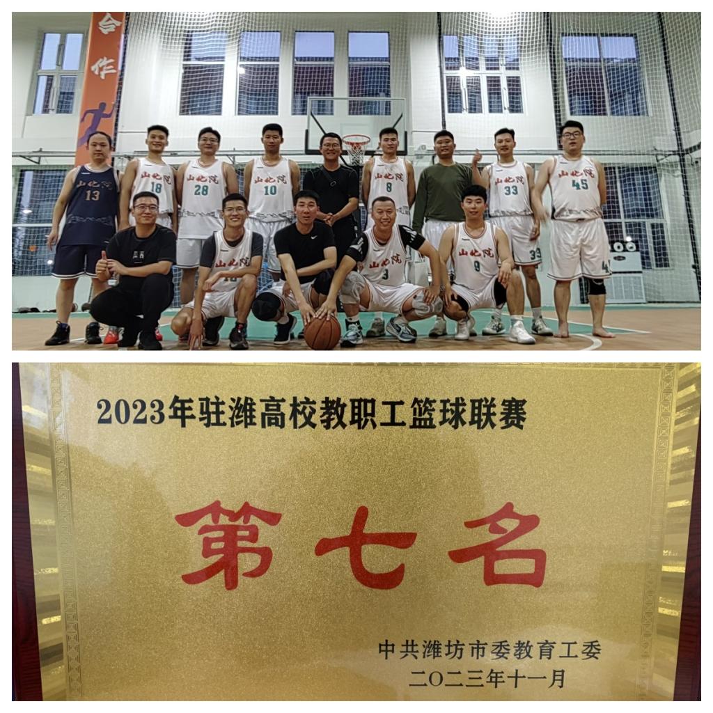 近日,由潍坊市教育工委主办,潍坊职业学院协办的2023年驻潍高校教职工篮球联赛圆满结束。本次联赛共有16支驻潍高校代表队参赛,比赛历时近一个月,经过激烈角逐,我校代表队最终荣获第七名。