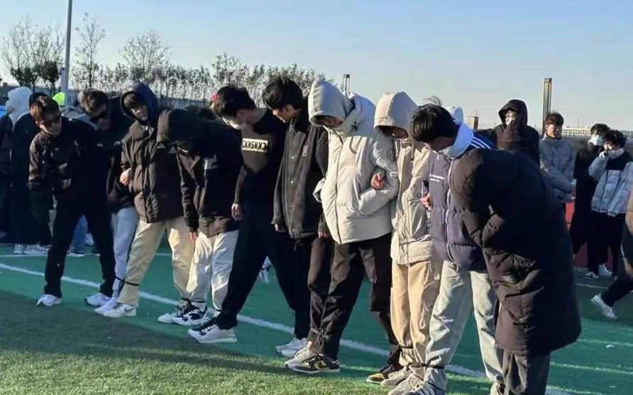 开幕式前,由学生干部组织学生从学校出发前往操场,并且一路跟随,确保学生的安全。