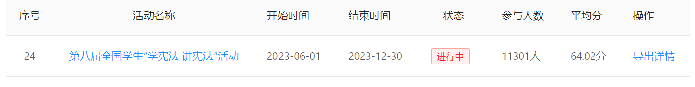 实施“宪法卫士”行动,高效参与网络学习平台学习。组织学生登陆教育部全国青少年普法网开设的宪法学习专栏进行注册和自主学习,大力营造学宪法、讲宪法的良好氛围。学生踊跃参加宪法学习活动,认真完成答题任务。学校11301名学生登陆平台学习,活动参加率达100%,涌现出数百名“宪法小卫士”。