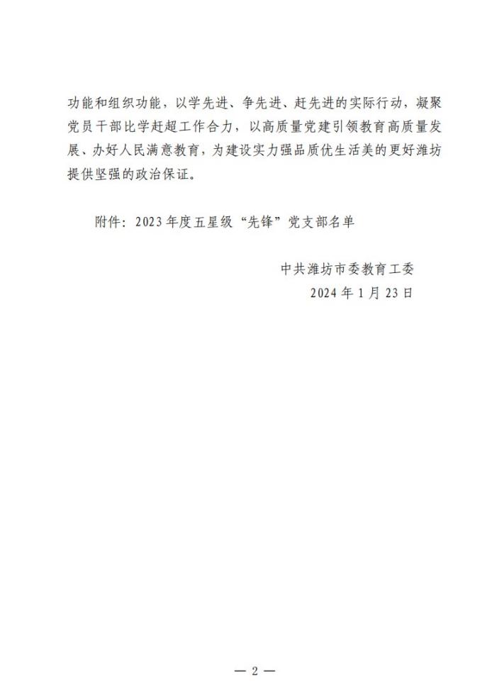 学校将站在新的起点上再接再厉,充分发挥先锋党支部模范引领作用,强化党建品牌创建与引领,推动基层支部全面建设进步,以强品牌党建引领学校高质量发展,努力办好人民满意的学校教育,为建设实力强、品质优、生活美的更好潍坊贡献力量。