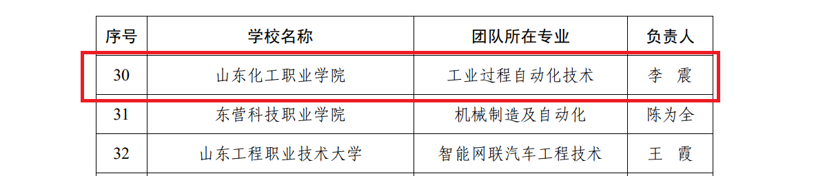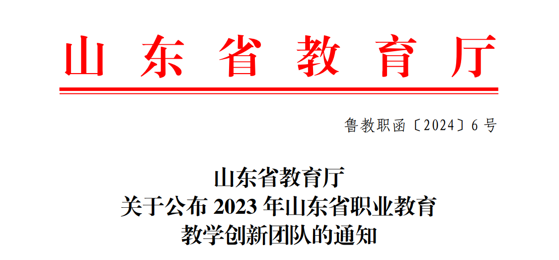 近日,山东省教育厅发布《关于公布2023年山东省职业教育教学创新团队的通知》(鲁教职函〔2024〕6 号),我校工业过程自动化技术、电子商务、石油化工技术三个教学团队成功入选。