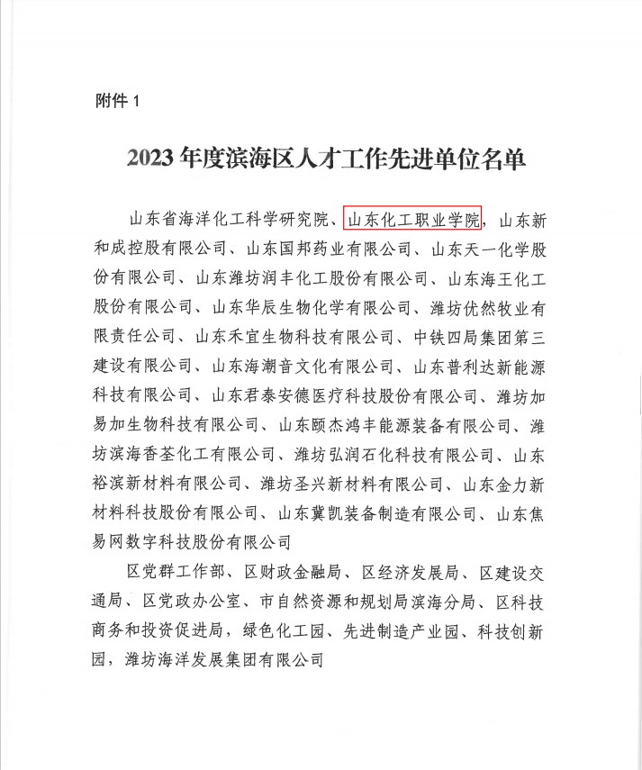 学校将把2023年度滨海区人才先进单位和个人的荣誉转化为推动事业发展、强化责任担当的动力,力争在全省范围内形成标识度高的“山化院”品牌,以实干展现新作为,用奋斗交出新答卷,不断为地方区域经济社会高质量发展注入新质生产力。