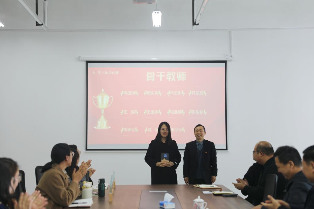 冯喜成副校长为第一批骨干教师授牌,潘慧副书记为金牌辅导员授牌。骨干教师代表王雅男和金牌辅导员代表赵杨分别作表态发言,他们将发挥榜样引领作用,凝心聚力,踔厉奋发,全力推动学校教育事业的高质量发展。