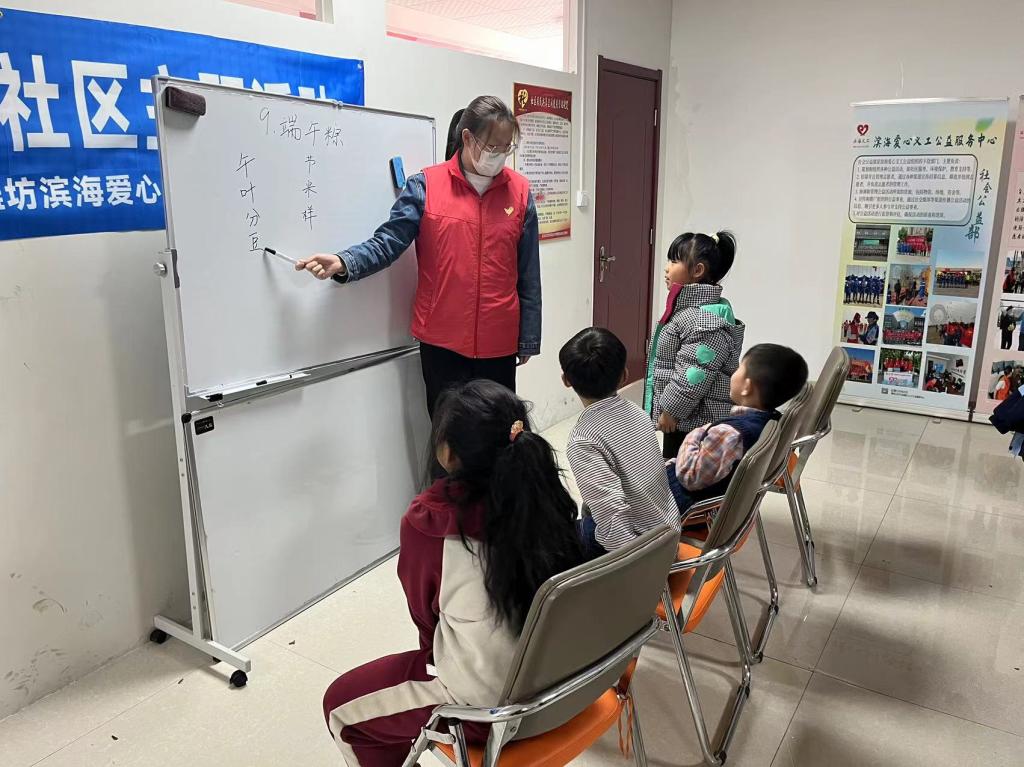 活动前期,青年志愿者提前考察实际情况,根据社区需求详细制定授课计划,合理分配工作任务。活动中,志愿者们指导小朋友们识字、阅读、手工制作等。