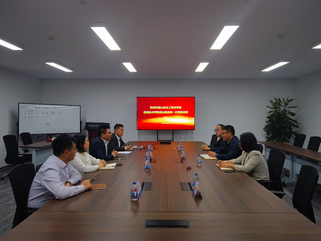 在鹰雁科技,郝院长同霍成琳董事长就学生技能竞赛、精品课程建设等相关事宜进行沟通交流。