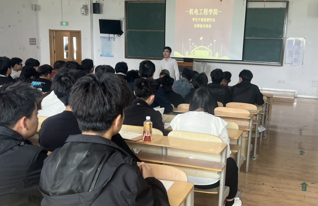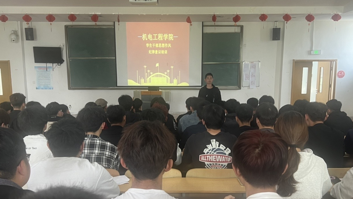 为提升学生自我教育、自我管理、自我服务的能力,增强学生干部队伍的凝聚力和号召力,4月23日下午,机电工程学院在阶梯4教室组织召开学生干部培训会。机电工程学院辅导员李祥林、学生会全体成员参加了本次培训。