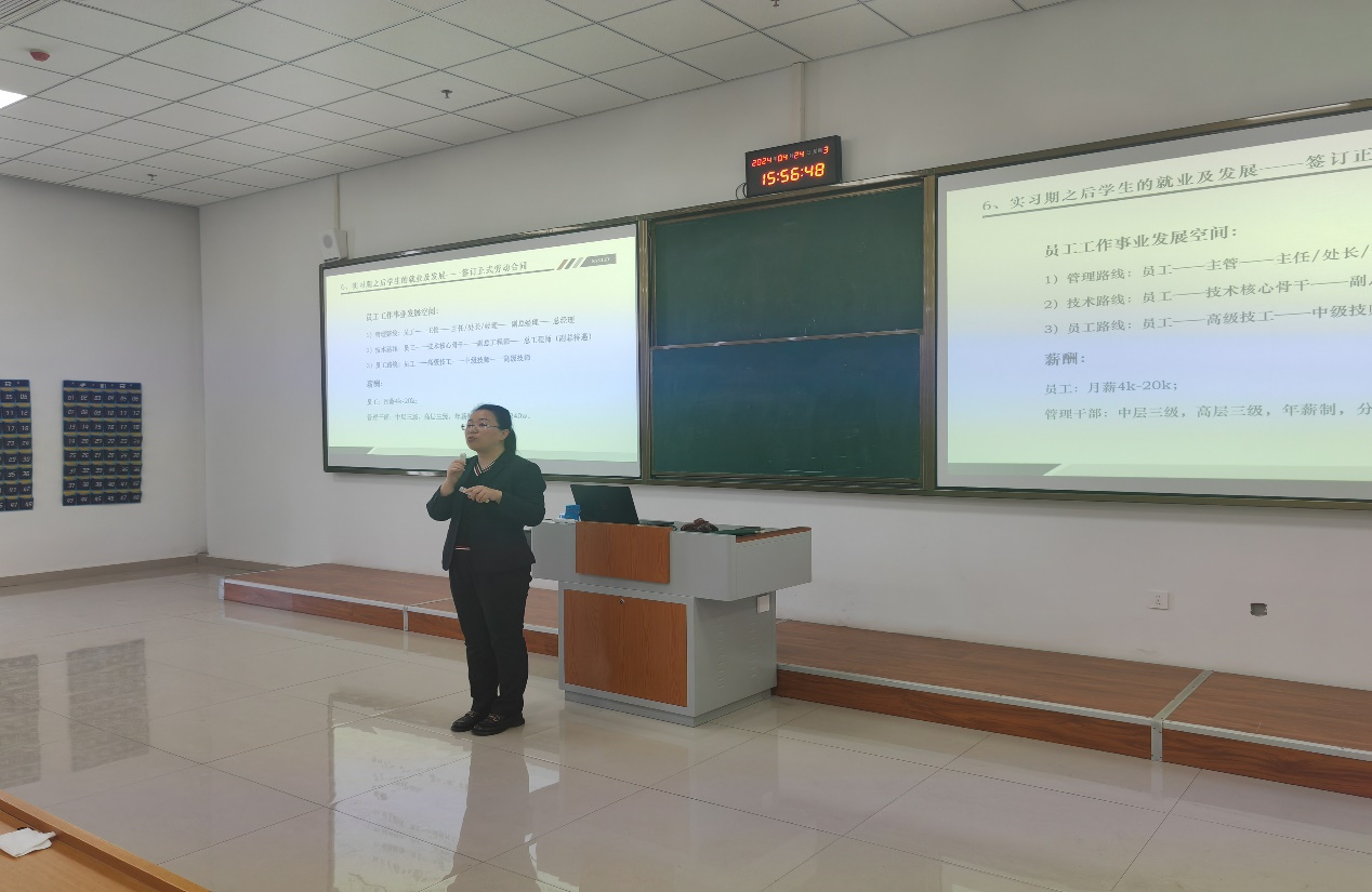4月24日,青岛三利集团走进山东化工职业学院管理工程学院,举办了一场别开生面的宣讲讲座。此次活动旨在向广大学子介绍三利集团公司的企业文化、业务范围以及未来发展规划,为即将实习的学生提供就业选择。