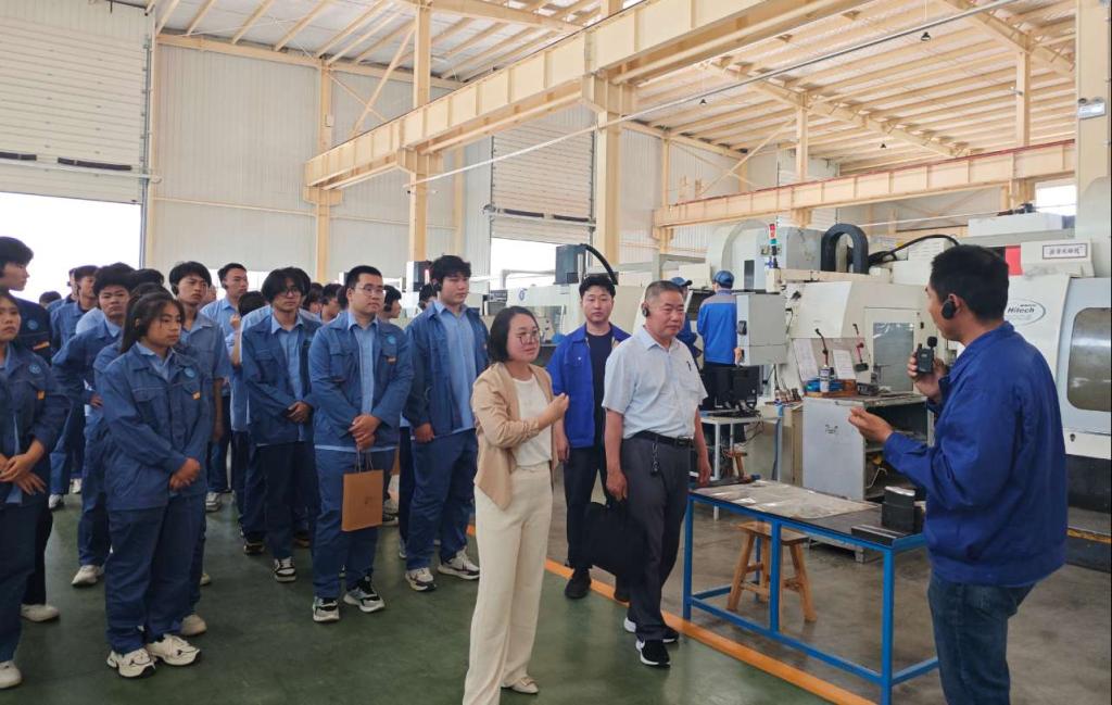 当天下午,师生一行又来到了豪迈实训基地,基地负责人李工对基地的大型设备的操作原理及运行程序进行了专业讲解,学生学习热情高涨,纷纷表示今后将全面提升自身专业能力,以便更好的实习就业。