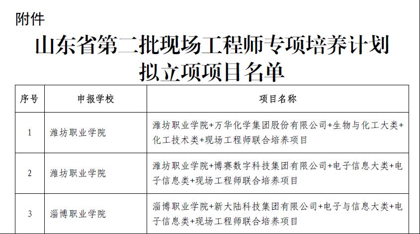 近日,山东省教育厅发布关于第二批现场工程师专项培养计划项目遴选评审结果,我校与潍柴集团联合申报的自动化类现场工程师联合培养项目成功获批立项,不仅标志着我校现场工程师培养项目取得了实质性进展,也为我校产教融合、校企合作工作走深走实奠定了坚实基础。