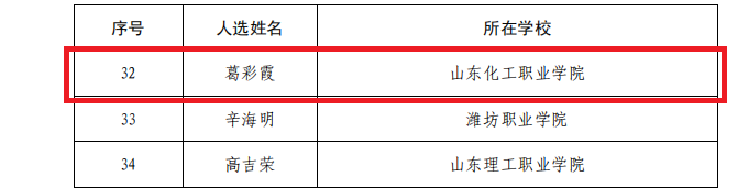 近日,山东省教育厅发布了《关于公布第四届山东省职业教育青年技能名师名单的通知 》(鲁教职函〔2024〕28号),我校葛彩霞老师被认定为第四届山东省职业教育青年技能名师。