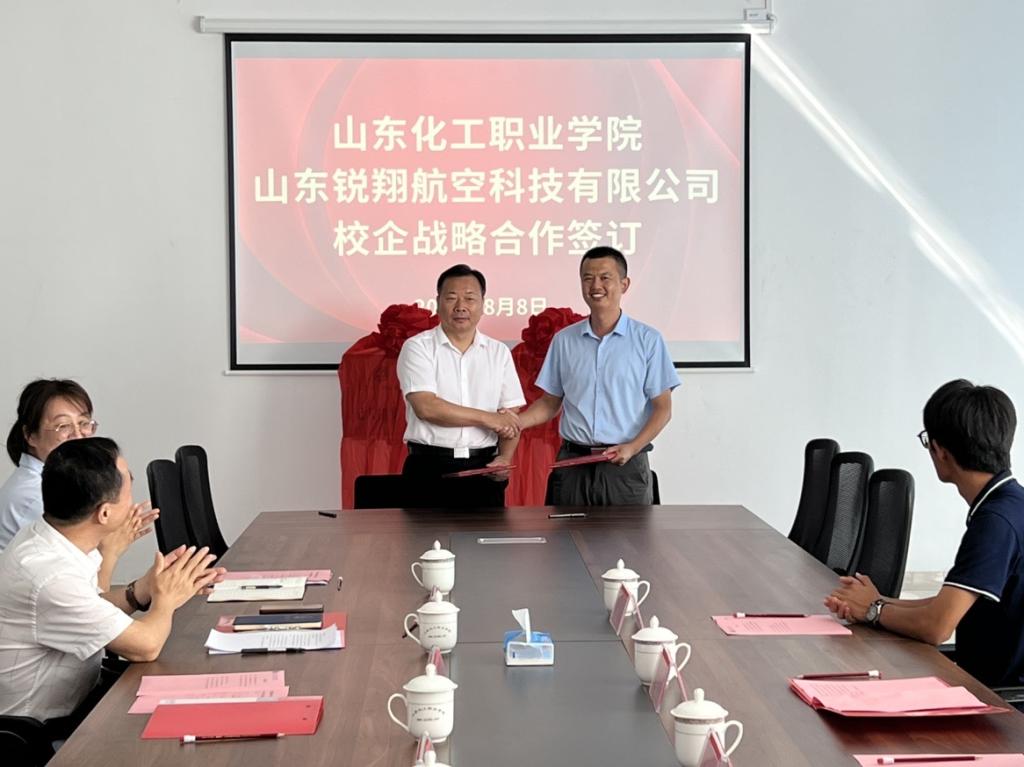 山东锐翔航空科技有限公司教育事业部经理刘志强,技术部经理梁朋朋,学校校企合作处、机电工程学院负责同志参加签约仪式。