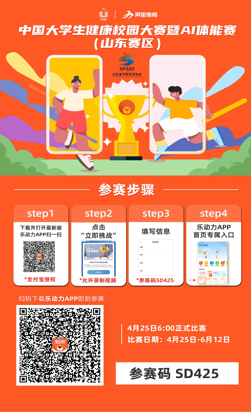 为贯彻落实《关于深化体教融合促进青少年健康发展的意见》《关于举办中国大学生健康校园大赛暨 AI体能赛(山东赛区)的通知》文件精神,增强疫情期间师生体质,现面向全校师生开展中国大学生健康校园大赛暨 AI体能赛(山东赛区)大赛,具体事项通知如下: