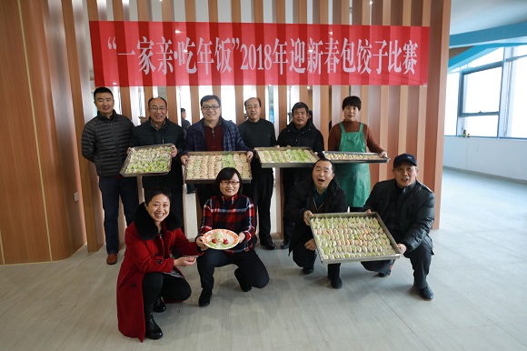 随后伴着教职工热烈的掌声,主持人宣布晚会开始,水饺制作比赛拉开帷幕。共有化学工程系、机关、基础教学部、机电工程系、自动控制系、管理工程系六支代表队参加。化学工程系呈现了一幅“五福”水饺图:一祝大家“财源广进,年年有鱼”,二祝工作热情不减当年,继续“一丝不狗”,三祝学院事业蒸蒸日上,领域内“鹤鹤有名”,四祝各单位海纳百川“人才济济”,五祝在这个熙熙攘攘、白衣飘飘的年代,“坚持苯我、不忘苯心”,奋起直追,拥抱梦想;机关代表队则将水饺摆放成“不忘初心”四个字样,寓意着踏进新时代要不忘初心,牢记立德树人的神圣使命,办好人民满意的高职教育;基础教学部的主题是“齐鲁一家亲”,一只翩翩飞舞的蝴蝶代表鸳都潍坊,与她真情相连的是代表齐鲁石化公司的篆书“齐”字,深情寓意:站在潍坊望齐鲁,团结友爱一家亲;自动控制系将水饺摆成一个“齐”字和太阳造型,寓意着齐心协力、生机勃勃;管理工程系的水饺作品是“繁花似锦”“一颗红心向党”“如鱼得水”,温馨的寓意让人幸福满满;机电工程系的水饺作品是“一座火焰山”,寓意着新的一年热情饱满,活力四射,红红火火。最终,化学工程系、机关和基础教学部分别获一二三名。
