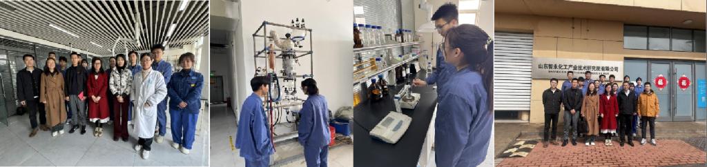 在智永化工总经理朱总的陪同下,师生一行先后参观了企业研发中心、中试车间及质检实验室。工作人员详细讲解了精细化工产品的工艺流程,从原料预处理、催化反应到成品包装,全程展现智能化、绿色化生产模式。师生们近距离观察了高精度仪器设备运行场景,并对企业采用的环保处理技术、数字化管理系统表现出浓厚兴趣。