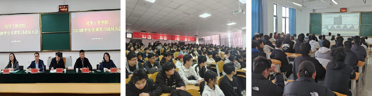 为引导学生做好实训实习前的各项准备,保证实训实习工作的顺利开展,4月2日下午,化学工程学院组织召开了2023级学生实训实习动员大会。大会采用“1个主会场+22个分会场”的联动模式,通过线上线下融合的方式同步开展。教务科研处、校企合作处、招生就业处、学院相关负责人,各辅导员、班主任以及2023级全体学生参加此次会议。会议由化学工程学院院长葛彩霞主持。