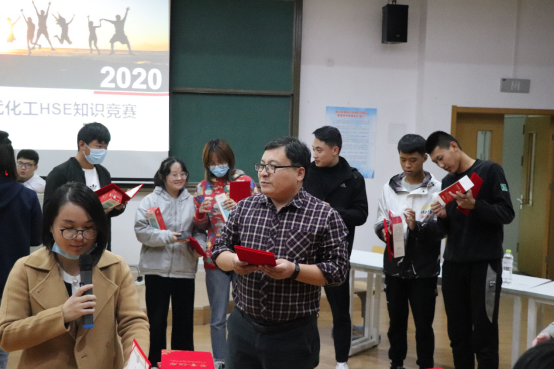 本次知识竞赛持续进行了5个多小时,但现场的同学们依然乐此不疲、热情满满。本次比赛共评出一等奖2队,二等奖8队,三等奖10队及部分优秀奖。化学工程学院副院长吕宜春、院长助理葛彩霞分别为获奖队伍颁发了相应证书及奖品,并对本次比赛的举办情况予以肯定,鼓励大家以后多参赛,多拿奖,多攒资本,为自己的大学生活增添浓墨重彩的一笔。