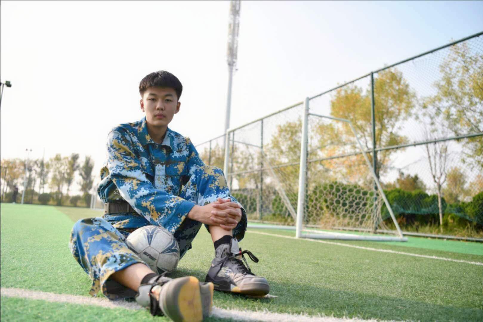 来自山东化工职业学院的他平时的兴趣爱好是玩滑板、打篮球偶尔也会打打游戏他说:学校环境很好虽然军训的日子很累但能让人明白许多道理教官还会讲一些部队里的故事很有趣也很有意义。