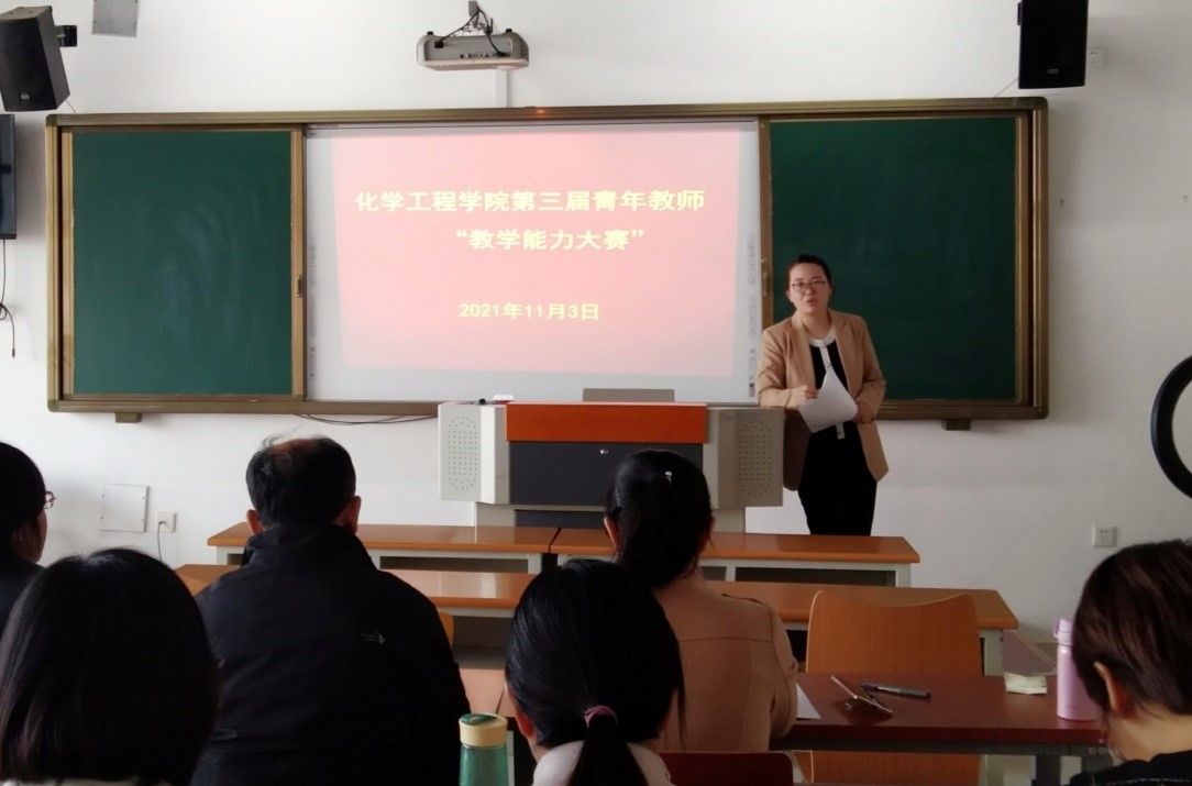 为进一步提升青年教师课堂教学能力和专业素养,锤炼教学基本功底,11月3日下午,化学工程学院第三届青年教师教学能力大赛在1307教室如期举行,同时开启线上直播。此次大赛的线下评委由化学工程学院副院长葛彩霞、分析检测教研部主任张宝玲、经验丰富的专业教师窦肇然、王国青担任。校外赴企授课教师及线下听课教师,参与线上投票。