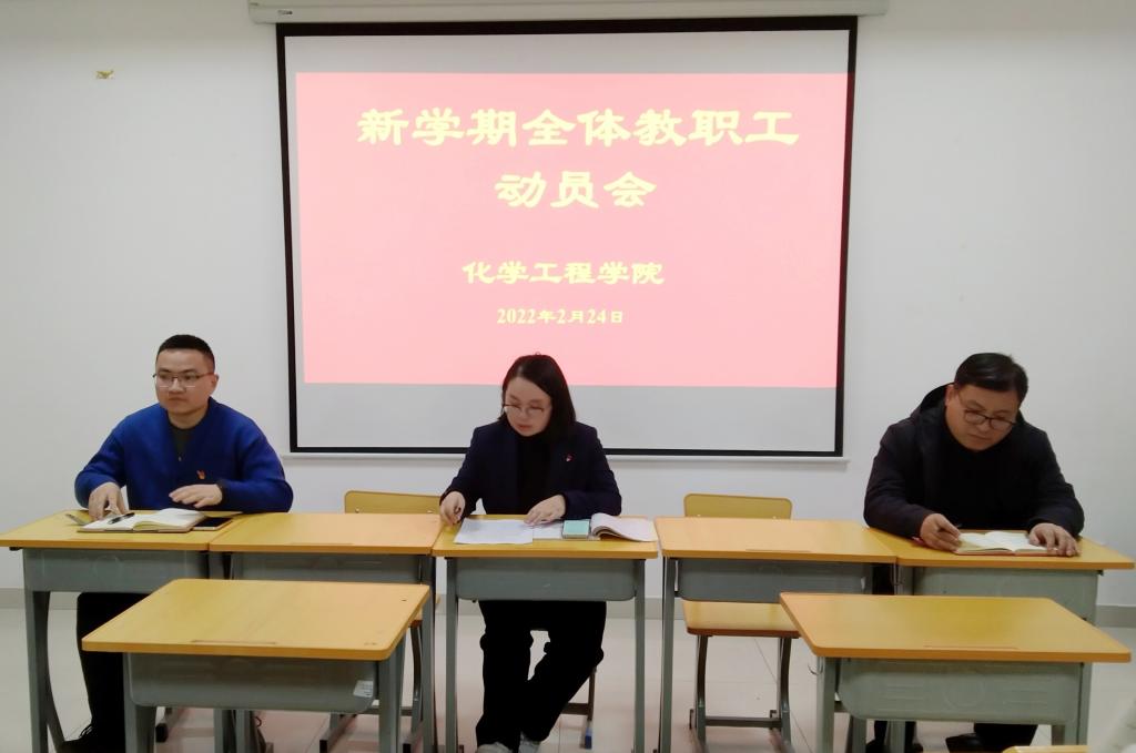 2022年2月24日下午,化学工程学院组织召开了2022年春季新学期工作动员会。会议由学院党总支副书记王恒磊同志主持,学院全体教职工参加。