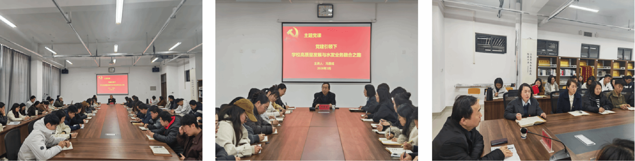 冯喜成同志以“党建引领下学校高质量发展与水发业务融合之路”为题,为全院教师带来了一场思想深刻、内涵丰富的专题讲座。他首先对化学工程学院近年来取得的成绩表示肯定。他指出,化学工程学院坚持党建引领,紧扣立德树人根本任务,在教学质量提升、师生竞赛、实习就业等方面成效显著,为学校整体发展注入了强劲动力。立足职业教育发展新形势和学校发展大局,冯喜成同志对学院未来发展提出明确要求:一是强化经营意识,推动降本增效。要树立“节约办校”理念,全体教职工从点滴做起,杜绝资源浪费,把有限资金用在关键处。同时,积极探索“全员创收”路径,拓宽办学资源渠道,增强学院自我造血能力。二是转变思想观念,激发内生动力。要正确认识个人与集体的关系,以“打工人的身份,主人翁的心态”投入工作,把个人成长融入学院发展大局。三是坚持特色发展,擦亮化工品牌。要抓住职业教育“黄金十年”发展机遇,继续深耕化工领域,走特色发展之路。四是深化全员育人,提升师资水平。要推动管理力量、教学力量下沉学生工作一线,挖掘育人特色,构建全员、全过程、全方位育人格局。鼓励教师主动下沉企业锻炼,了解行业前沿动态,将工程实践反哺课堂教学,切实提升“双师型”师资水平。五是汇聚集体智慧,共谋发展良策。要畅通建言献策渠道,鼓励全体教职工多提发展性意见,集思广益、群策群力,共同为学院高质量发展贡献智慧力量。冯喜成同志最后表示,学校将一如既往地支持化学工程学院的建设发展,为学院各项工作提供坚实保障。