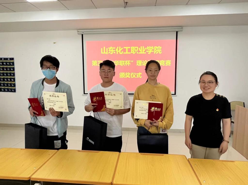 最后,葛彩霞书记为颁奖典礼做出总结,向受表彰的同学表示衷心的祝贺,同时对他们取得的成绩表示充分的肯定和认可。她提出本次大赛师生共同努力的结果,希望同学珍惜学校提供的平台,努力为省赛积极备赛,争取走到更大、更高的平台。同时她向同学们介绍了华联石化为华联石公司的发展情况,表达了企业求贤若渴、关爱学生的积极愿望,并对企业对本次比赛的大力支持表示示衷的感谢。