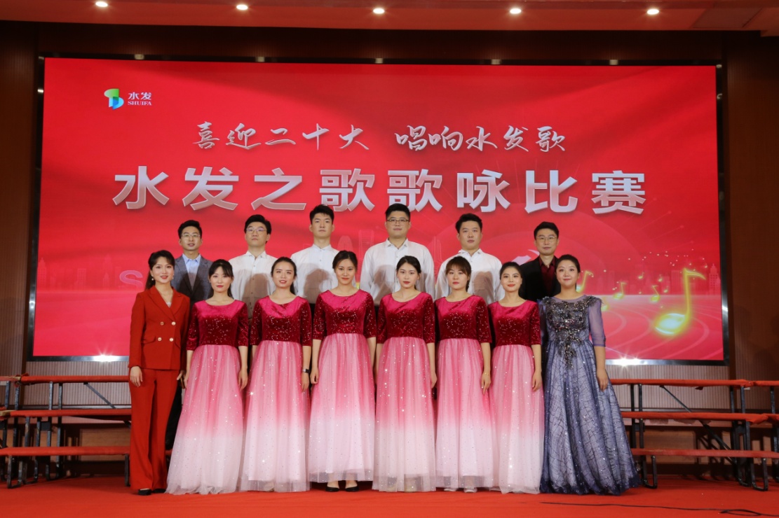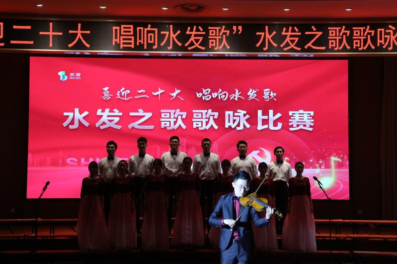 本次比赛共有来水发集团自集团总部及各权属公司的24支参赛队伍身着盛装轮番登场,以合唱、对唱、独唱、诗朗诵、快闪视频等形式演唱水发之歌《水发万物》。