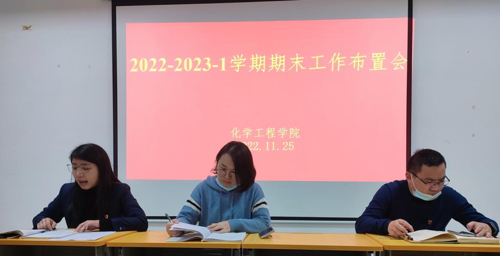 首先,化学工程学院院长助理王欣同志就学期末教学任务及考前准备工作做出具体安排。她强调,针对当前疫情形势的反复性和复杂性,为本次期末考试各项工作带来一定难度,各位教师要强化意识,务必高度重视期末组卷、监考等各个环节的考试工作,认真做好考试命题、阅卷、成绩上传及审核工作,特别是试卷保密工作,保证期末考试各步骤、各环节工作落实到位,确保考试工作的顺利进行。