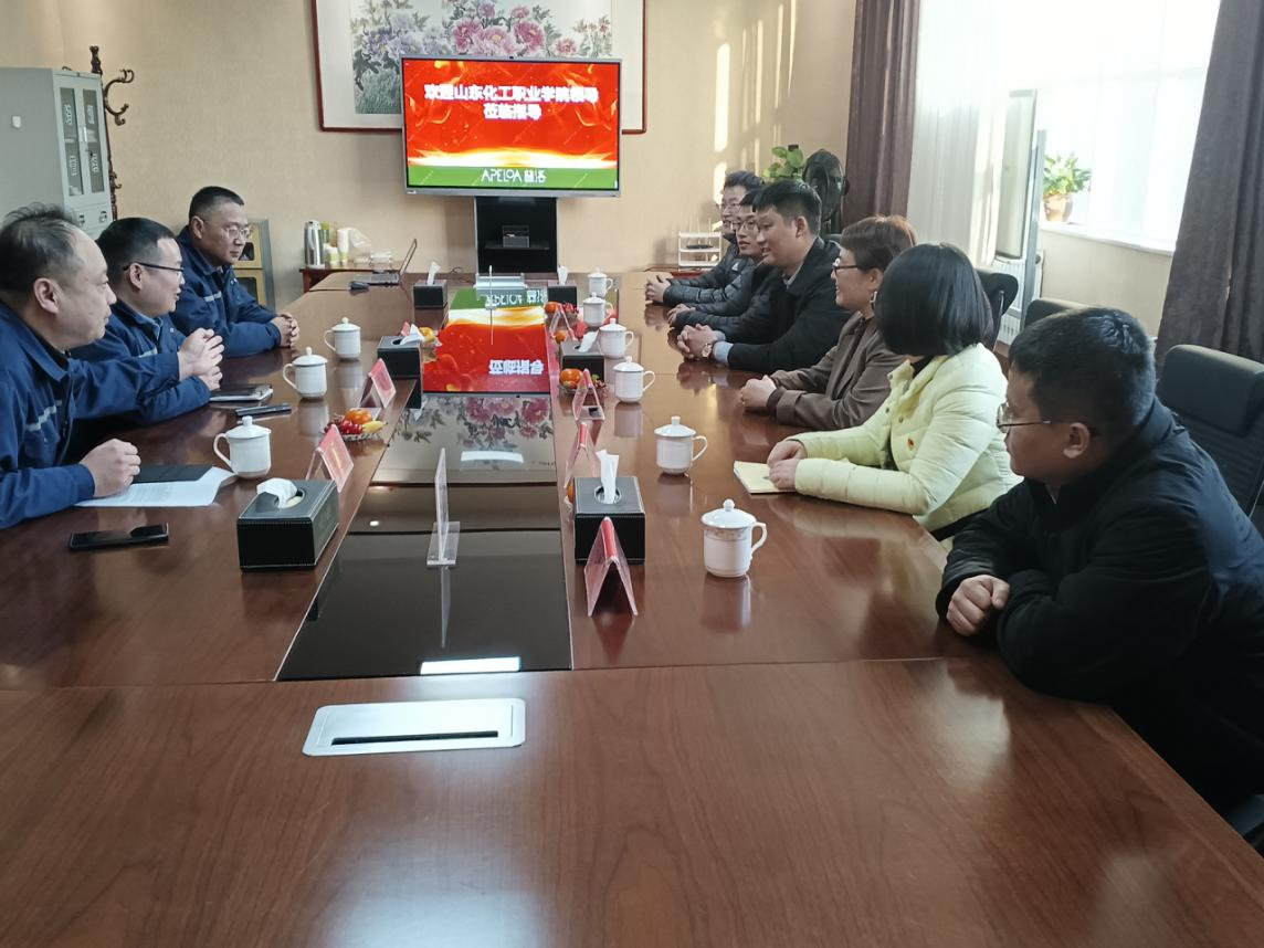 其次,山东化工职业学院党委委员、财务处处长李凤娟介绍了学校的发展概况、混合制改革和办学特色;学校培训处副处长王超重点介绍了我校毕业生情况、学校的实训基地;化学工程学院副书记、副院长葛彩霞着重强调了化学工程学院的专业建设、师资队伍、学生岗位实习标准和要求等;机电工程学院副院长刘凯对机电工程学院的专业概况、2023届毕业生情况做了详细介绍。