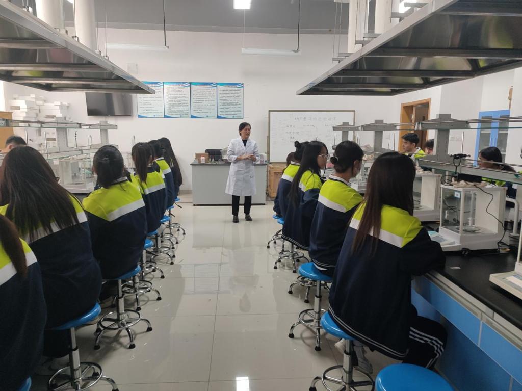 在化学分析项目体验环节,老师详细讲解了仪器、药品的正确使用方法和操作规范,实训的具体步骤和操作技能和技巧、安全事项,学生明确工作任务后,认真专注操作,增强了学生严谨科学和工作态度,培养学生树立认真、刻苦、一丝不苟的精神。