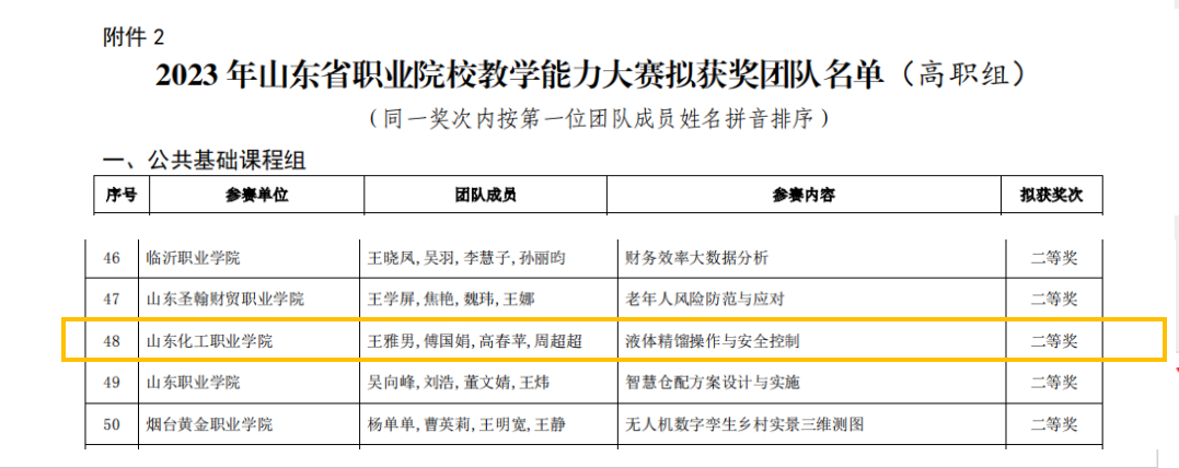 根据山东省教育厅发布的《关于2023年山东省职业院校教学能力大赛结果公示》,我院推荐的两支优秀教学团队脱颖而出荣获此次教学能力大赛二等奖。