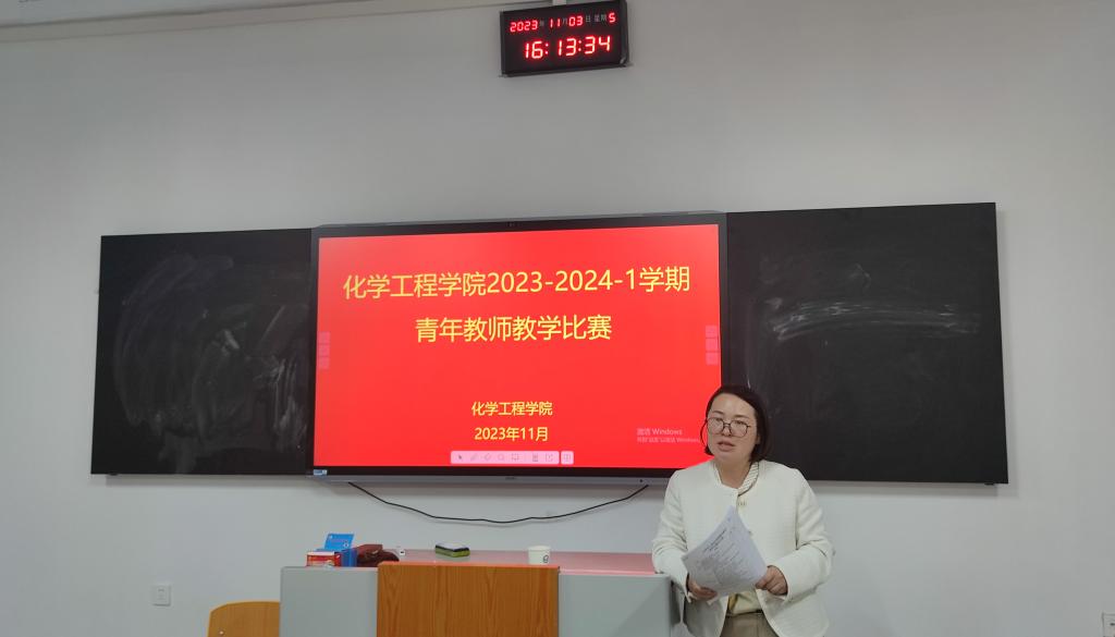 为促进青年教师的快速成长,充分调动教师讲课积极性,提高课堂教学水平,培养师资力量,化学工程学院于11月3日下午1:40在1号教学楼1304教室开展了青年教师教学比赛。本次比赛由化学工程学院院长助理王欣同志主持召开,评委由化学工程学院副院长葛彩霞、院长助理王欣以及各教研部主任担任。