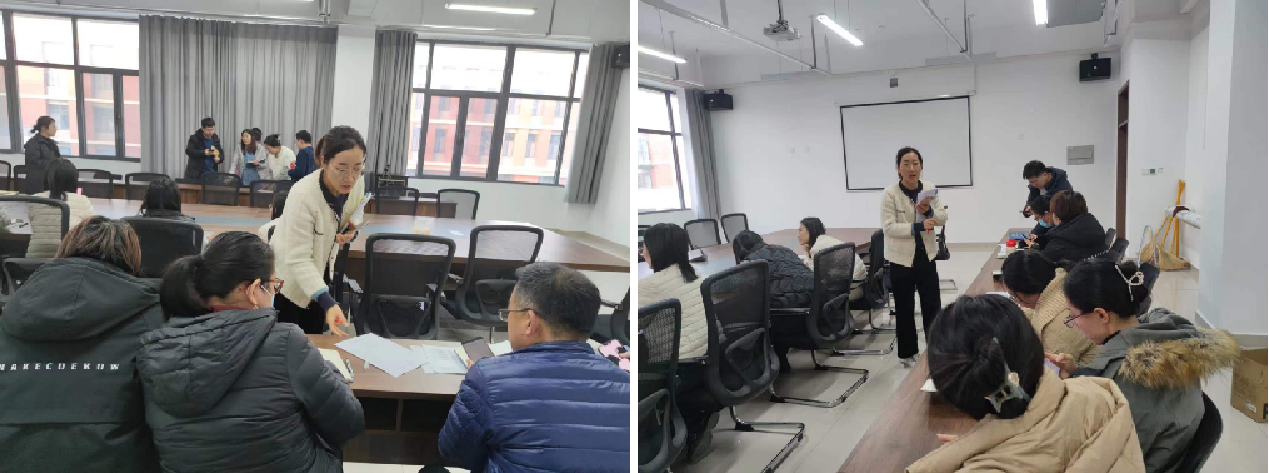 再次,由教务员程君霞老师向本学年新入职教师讲授监考具体实施办法,强调重要内容,同时对相关监考疑问进行一一答疑。