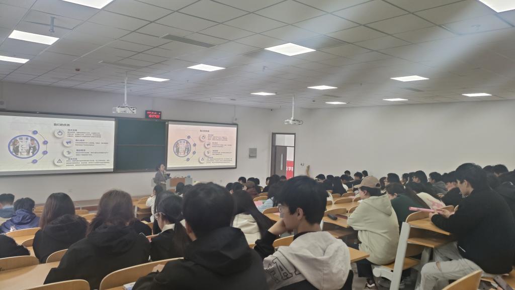 三家企业负责人分别结合PPT与视频宣传等方式展现了企业的雄厚实力与发展潜力。让学生从企业发展、业务组成、主要产品经营、资薪结构、晋升空间、福利待遇等多方面深入了解了企业。在互动环节,同学们纷纷举手提问,招聘团队耐心解答,现场气氛热烈非凡,有负责人强调,公司不仅注重技术革新,更重视员工的个人成长和发展,为职业发展和个人价值实现提供了双重机会。