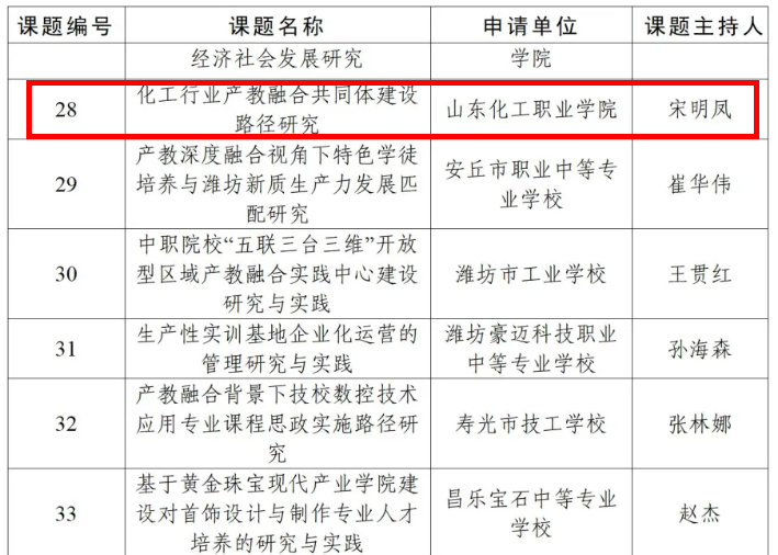 近日,潍坊市产教融合研究院公布了2024年度产教融合重点课题立项名单,我校化学工程学院周超超教师、宋明凤教师主持的2项课题获批立项。