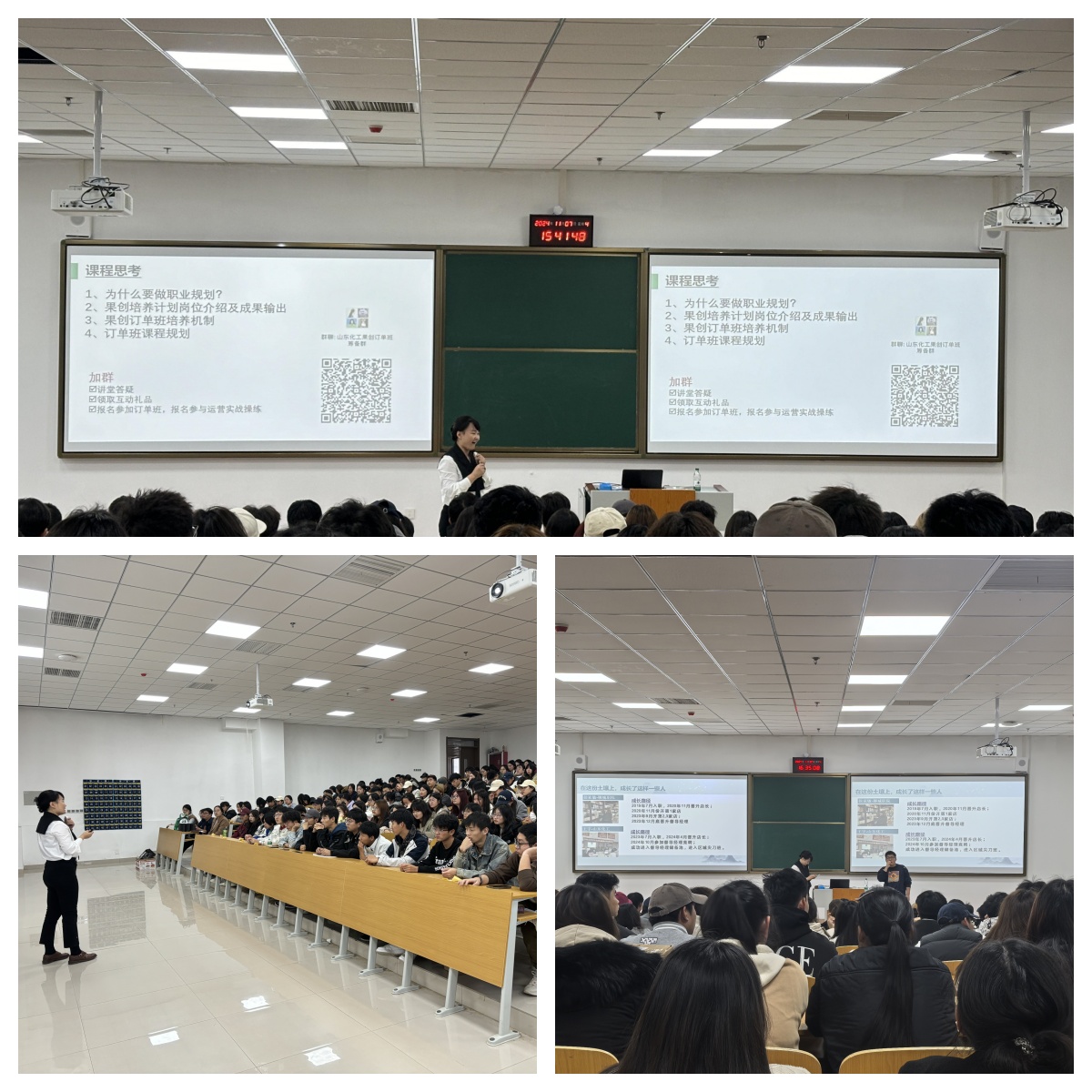 为深入贯彻《国务院关于印发“十四五”就业促进规划的通知》精神,加强高校生涯教育,增强大学生的生涯规划意识,11月7日下午,管理工程学院在主校区9号阶梯开展“劳模工匠大讲堂”活动,邀请济南百果园农产品有限公司高级人资经理郭洪珍莅临学校,为师生们带来了一场精彩的“职业生涯规划”讲座。管理工程学院副院长朱莎莎主持讲座,2023级、2024级共226名学生参加本次活动。