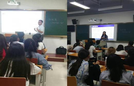 山东蓝创集团副总裁王成磊、管理教研部主任楚红兰就市场营销专业学生进行专业教育。王总对市场营销专业连锁经营与管理方向课程体系和创业体系进行了详细讲解,楚红兰主任就大家关心的市场营销课程设置、实训设施、大赛参与情况进行了介绍,讲解过程中学生反应热烈、跃跃欲试。