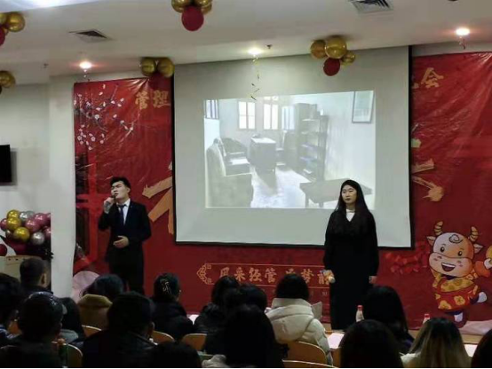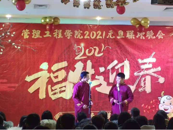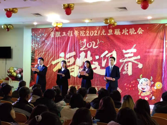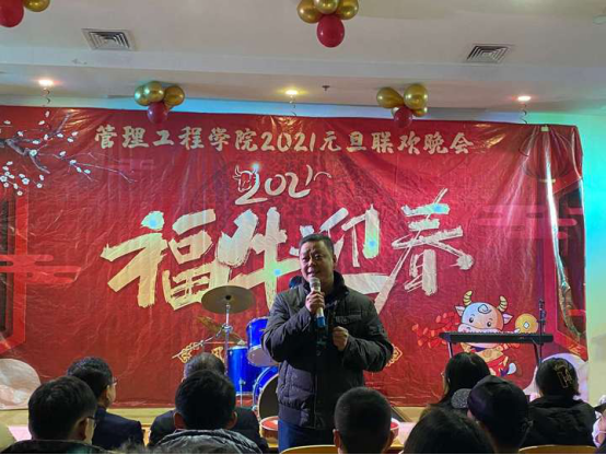 在主持人“玉鼠回宫传捷报,金牛奋蹄涌春潮”的报幕声中,2021年元旦联欢晚会徐徐地拉开序幕。学生处罗勇处长为管理工程学院元旦晚会开场致辞。