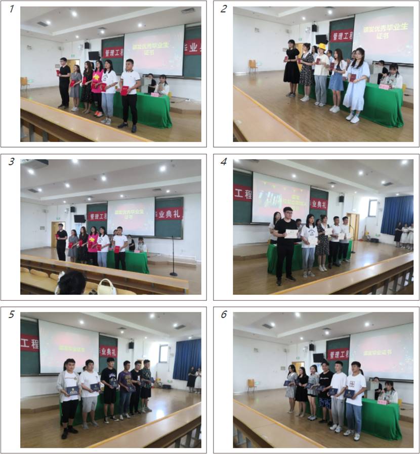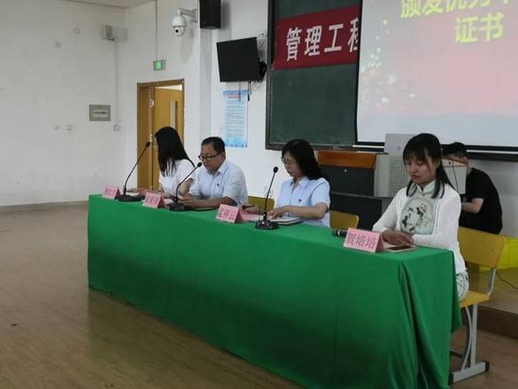 管理工程学院领导老师为学生颁发毕业证书及荣誉证书
