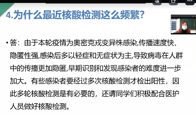 3月11日,疫情再次来袭,学校新一轮抗疫模式开启。管理工程学院开展了“抗击疫情,有你、有我、有大家”主题系列活动,全体教师采用多种形式,用好防疫大教材,上好战疫大课堂。