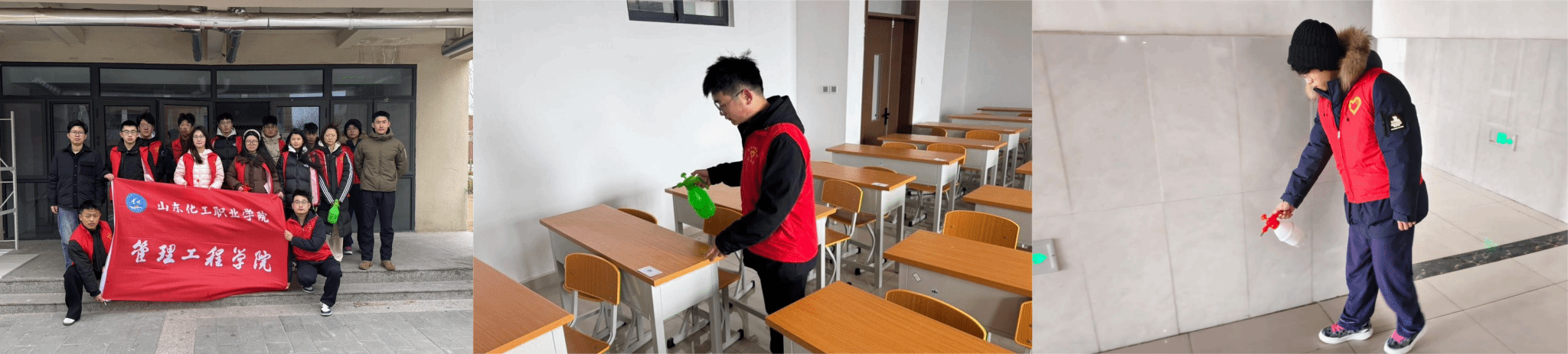 活动前期,学院精心部署,志愿者们闻令而动、主动请缨,以饱满的热情投入到防疫消杀工作中。他们化身校园健康的“守护者”,严格遵循操作规范,配比使用高效安全的消毒剂,对宿舍、教学楼等重点区域进行了全方位、无死角的喷洒与擦拭。